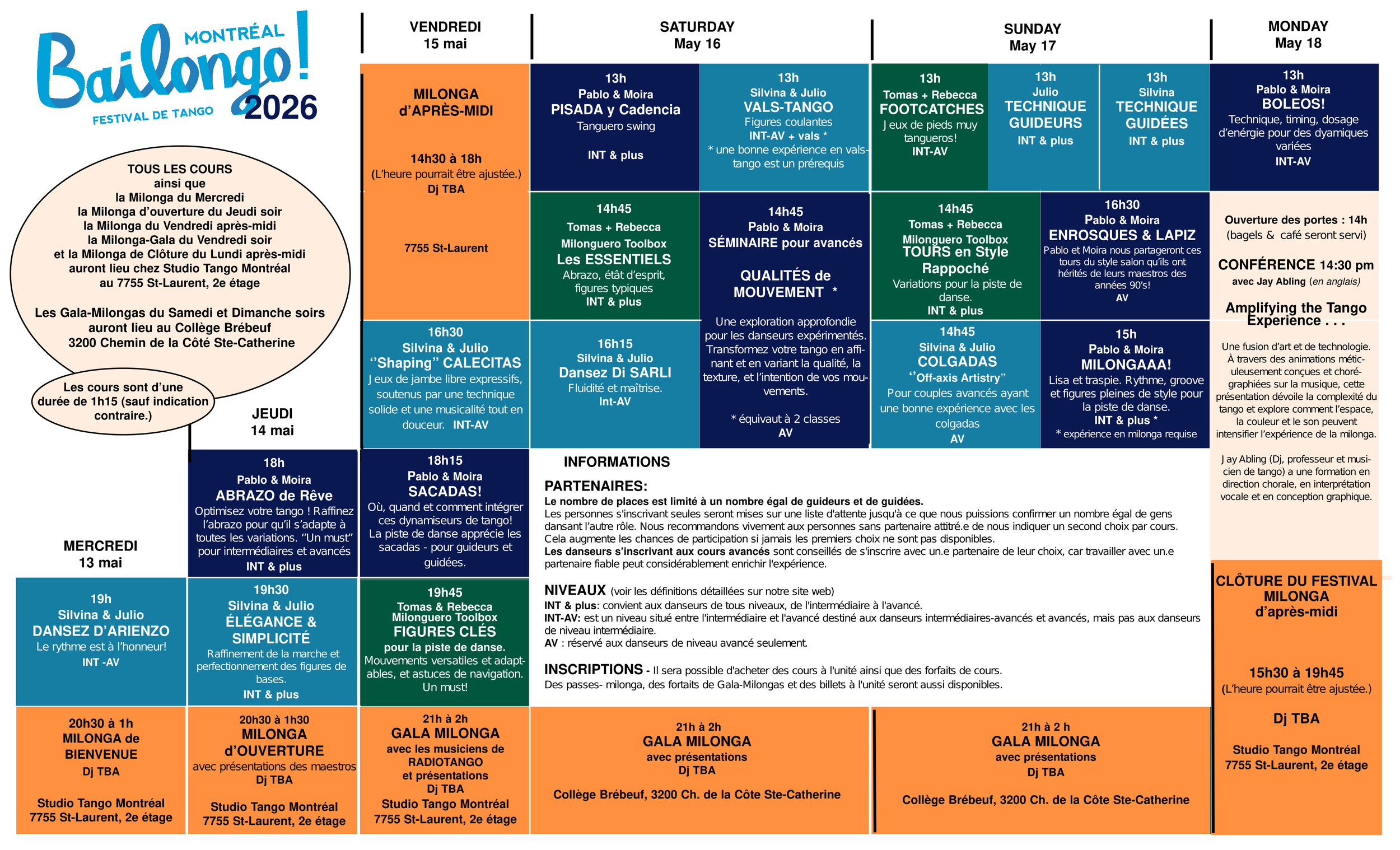 Bailongo Montreal aura lieu du 13 au 18 mai inclusivement. Notez que le lundi 18 mai est férié.