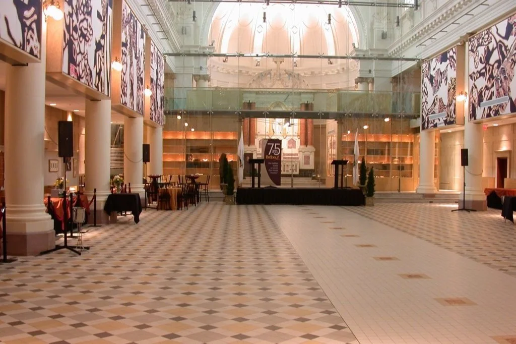La chapelle du Collège Jean-de-Brébeuf fut construite en 1927-1928 d’après les plans du Père Félix Martin, sous la supervision des architectes Dalbé Viau et Alphonse Venne et avec la collaboration de l’architecte Alphonse Piché, qui acheva le projet. Ce plan s’inspire de l’église Saint-Apollinaire-le-Neuf à Ravenne en France. Lors de sa renovation en 2003-2004, on retrouva le volume originel de la chapelle dont l’architecture beaux-arts – colonnades, chapiteaux, entablements, caissons – fut soigneusement restaurée et valorisée. Huit œuvres murales de l’artiste René Derouin ont été installées en permanence pour célébrer le 75e anniversaire du collège. Si belle est élégante, nous sommes ravis de présenter cette nouvelle salle pour le Bailongo de cette année !