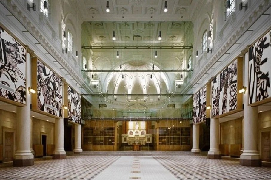 La chapelle du Collège Jean-de-Brébeuf fut construite en 1927-1928 d’après les plans du Père Félix Martin, sous la supervision des architectes Dalbé Viau et Alphonse Venne et avec la collaboration de l’architecte Alphonse Piché, qui acheva le projet. Ce plan s’inspire de l’église Saint-Apollinaire-le-Neuf à Ravenne en France. Lors de sa renovation en 2003-2004, on retrouva le volume originel de la chapelle dont l’architecture beaux-arts – colonnades, chapiteaux, entablements, caissons – fut soigneusement restaurée et valorisée. Huit œuvres murales de l’artiste René Derouin ont été installées en permanence pour célébrer le 75e anniversaire du collège. Si belle est élégante, nous sommes ravis de présenter cette nouvelle salle pour le Bailongo de cette année !